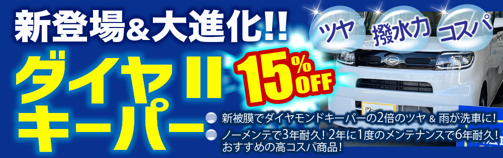 ・キーパープロショップもいろんなお店がある中でwebをいろいろ見てこのショップに決めました。エコダイヤキーパーを施工して頂きましたが、仕上がりも申し分なく流石は県内1位のショップでした。スタッフさんも丁寧で親切な対応で申し込みから仕上がりまでスムーズに出来ました。今度はメンテナンスで伺いたいと思ってます。ありがとうございました。